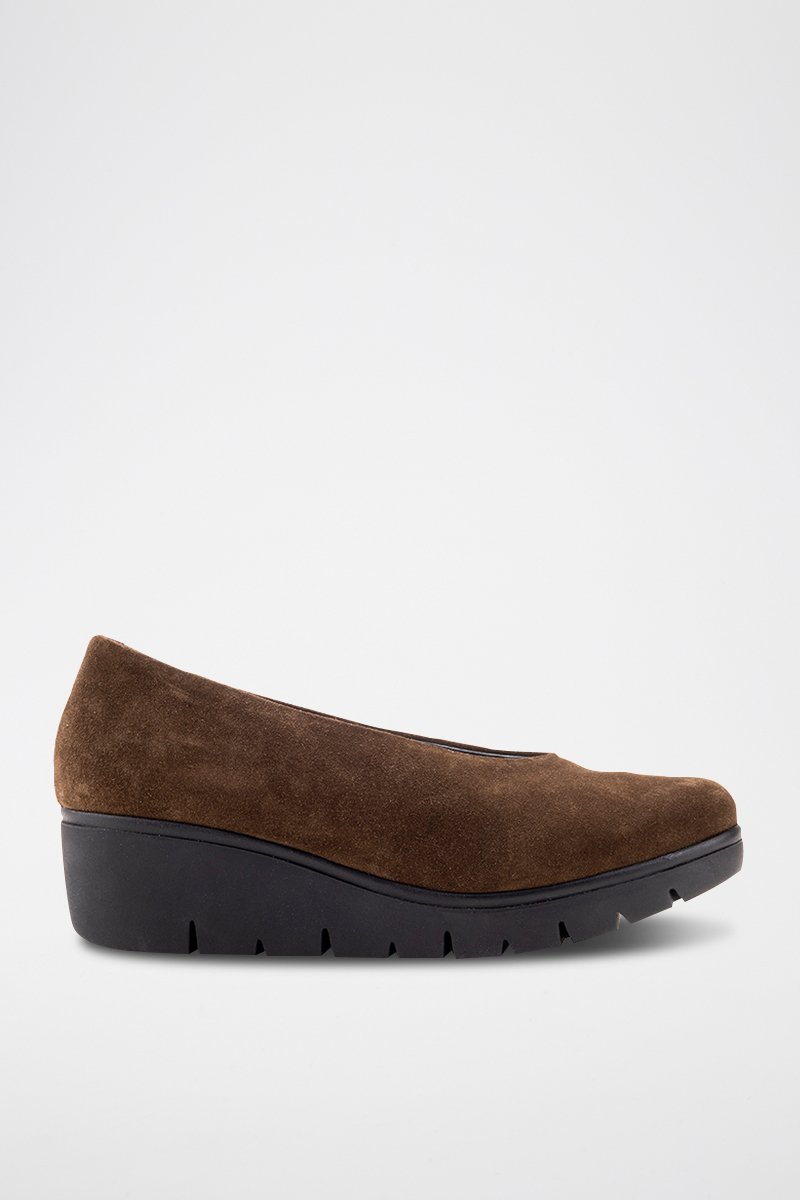 Slippers compensées en cuir et nubuck.