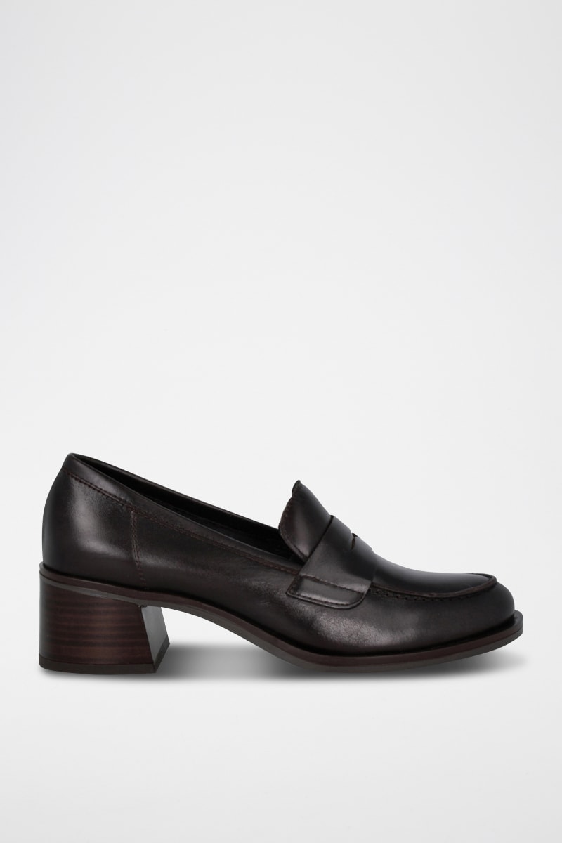 Mocassins à talons en cuir.