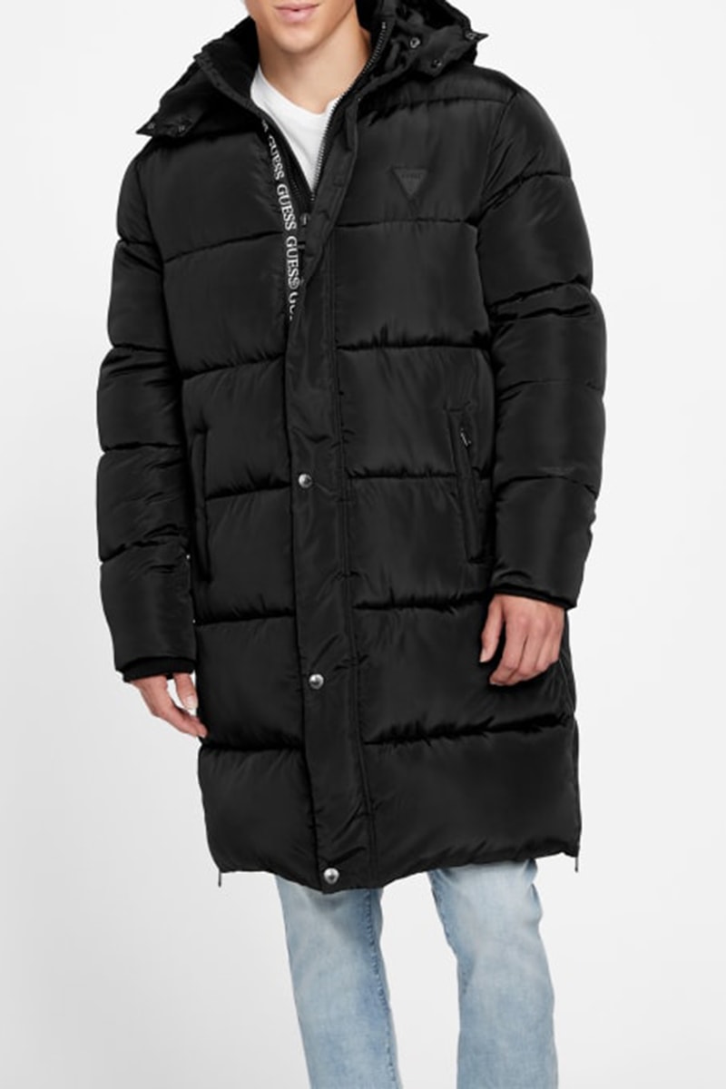 Doudoune longue à capuche.