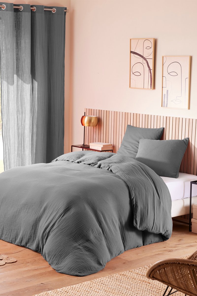 Parure de couette en gaze de coton 57 fils/cm² - Ardoise