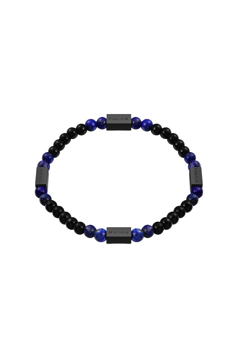 Bracelet élastique en lapis-lazuli, onyx et perles d’imitation.