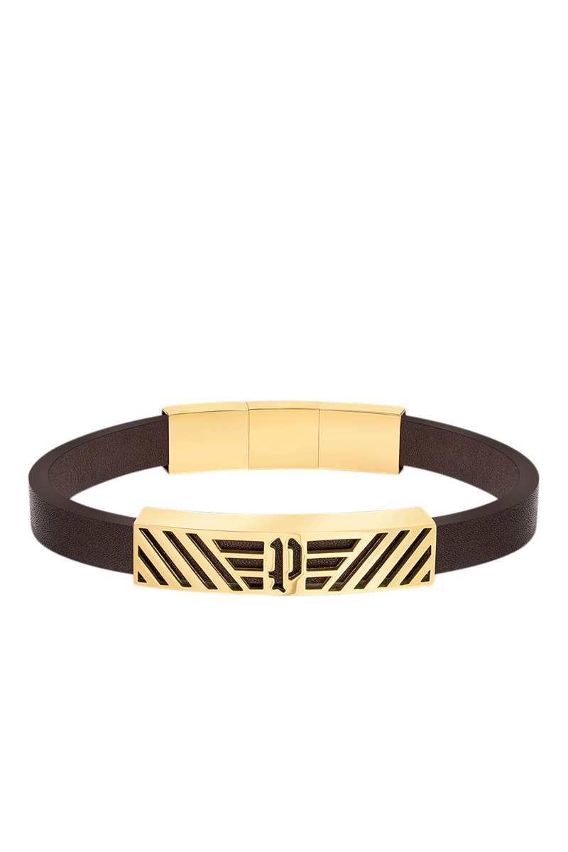 Bracelet en cuir et plaqué ion or jaune Lattitude