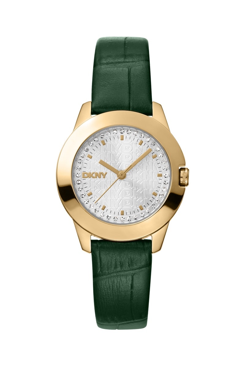 Montre à quartz en cuir - Vert et doré