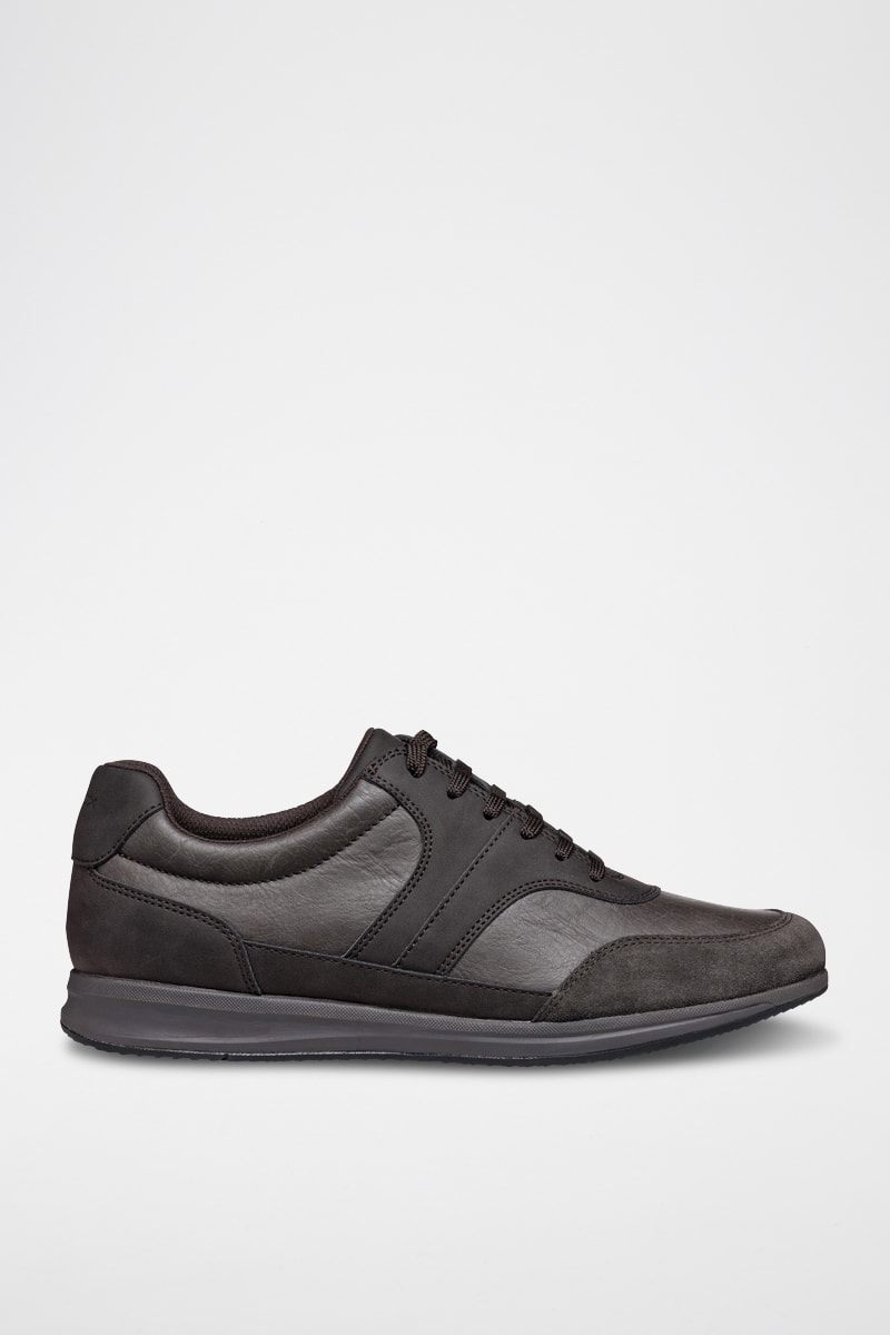 Empiècement en cuir de veau nubuck devant et sur les côtés.