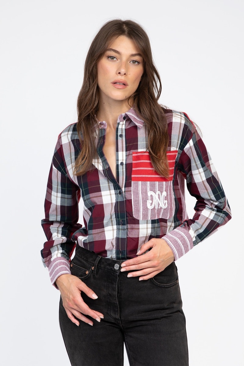 Motifs à rayures à l'encolure, sur les manches et la poche.