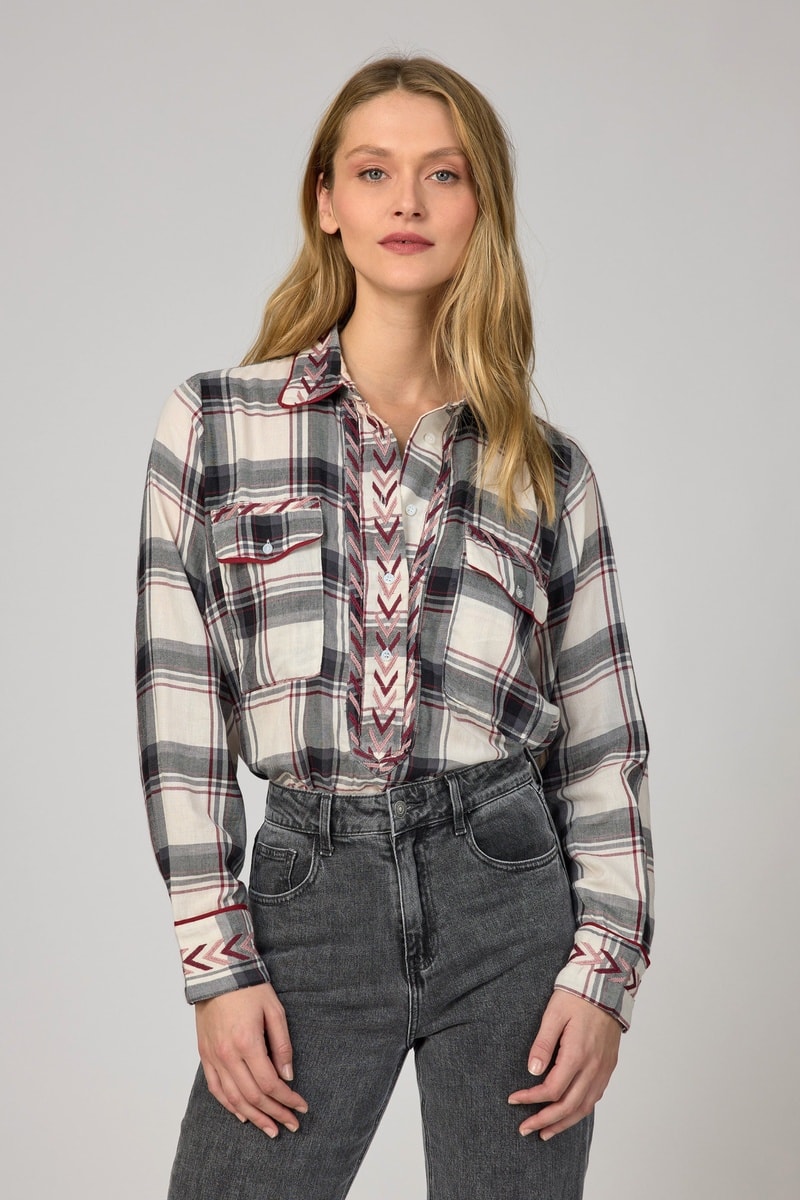 Liseré contrastant à l’encolure, sur les manches et devant.