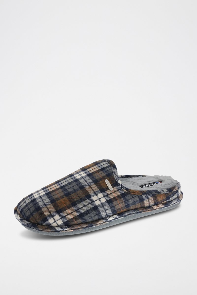 Pantoufles fourrées - Bleu marine et marron