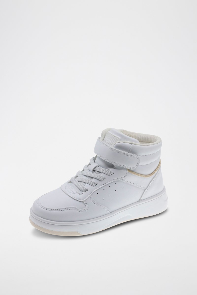 Fermeture à lacets et par scratch devant et zippée sur le côté.