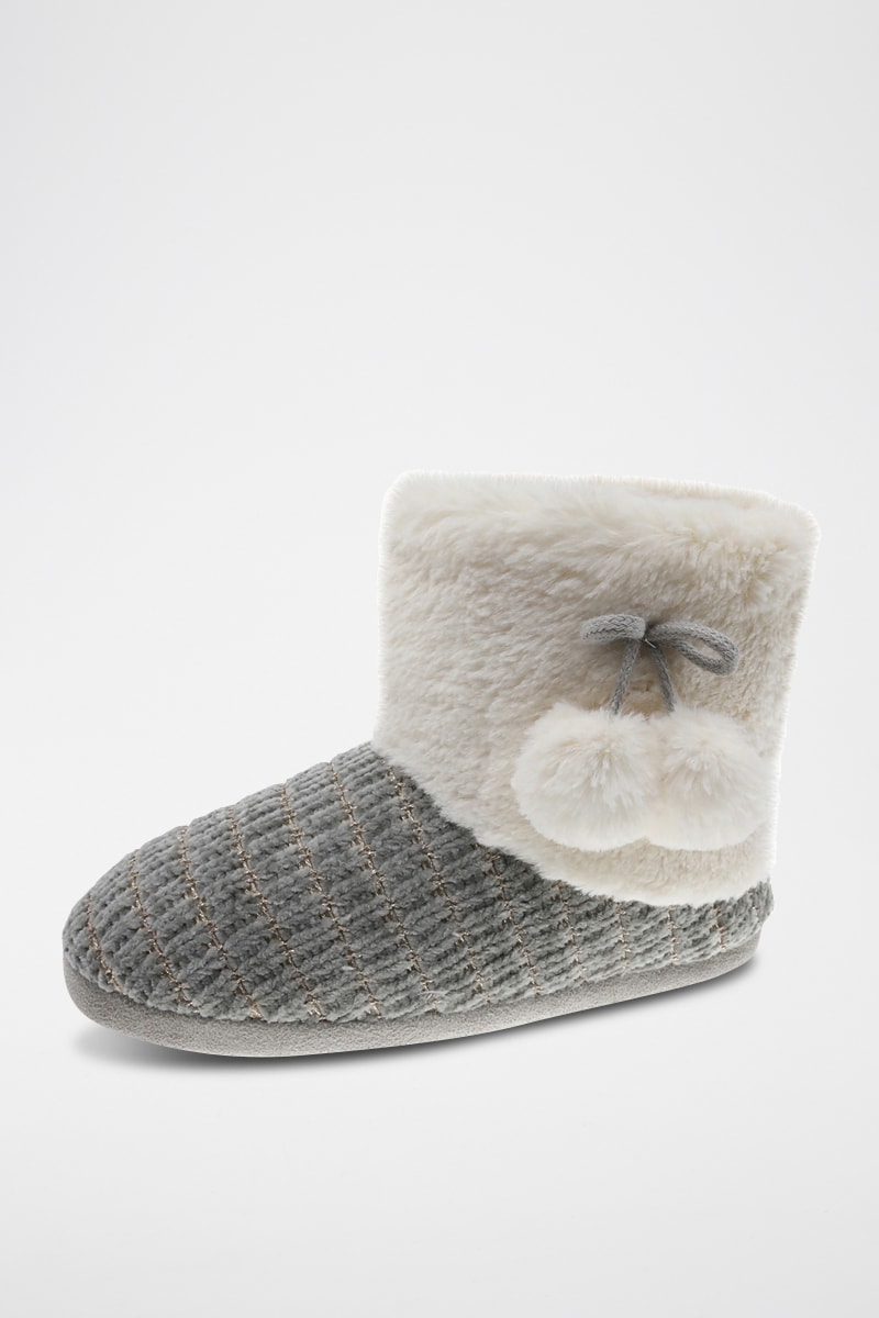 Chaussons fourrés - Gris et blanc