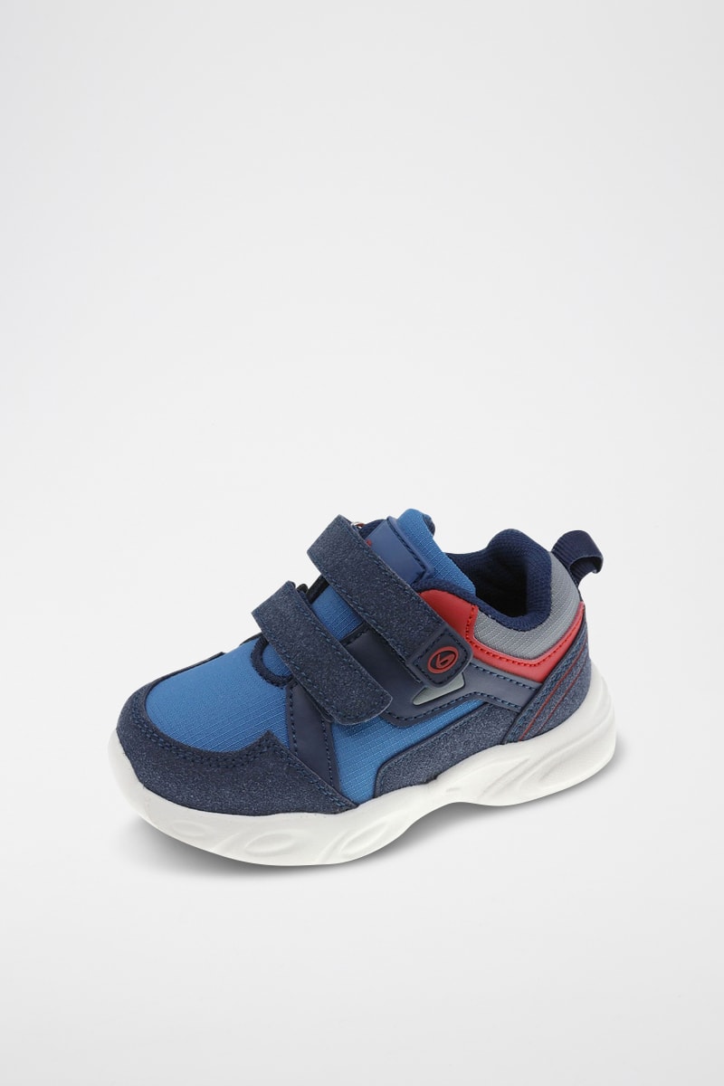 Fermeture à lacets et par scratch avec logo en relief.