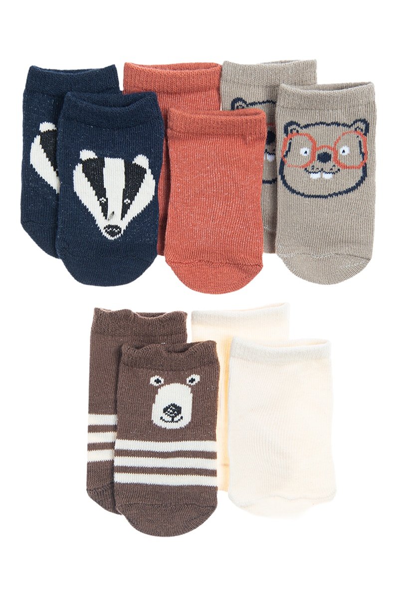 5 paires chaussettes dont 1 à motif raton laveur devant, 1 à motif castor devant et 1 à motifs ours et à rayures devant.