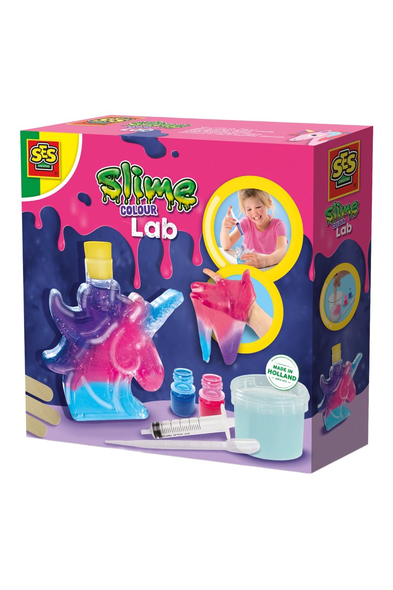 Règles du jeu : prépare le slime transparent selon les instructions. Utilise les colorants et la pipette pour injecter les couleurs pas à pas dans la bouteille. Mélange avec le bâtonnet et découvre un slime unique et multicolore !