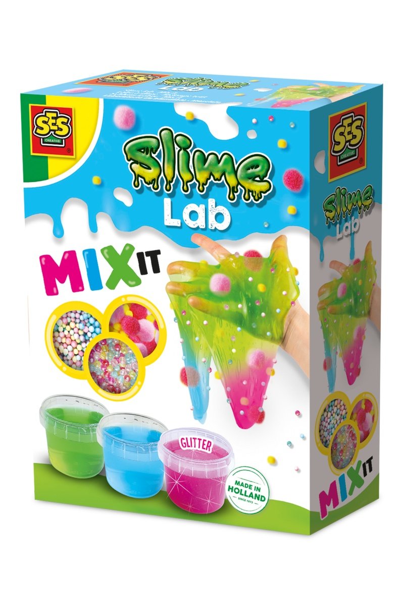 Matière : slime avec conservateurs, borax, colorants, épaississants, parfum, styropor, polyéthylène téréphtalate, paillettes bio