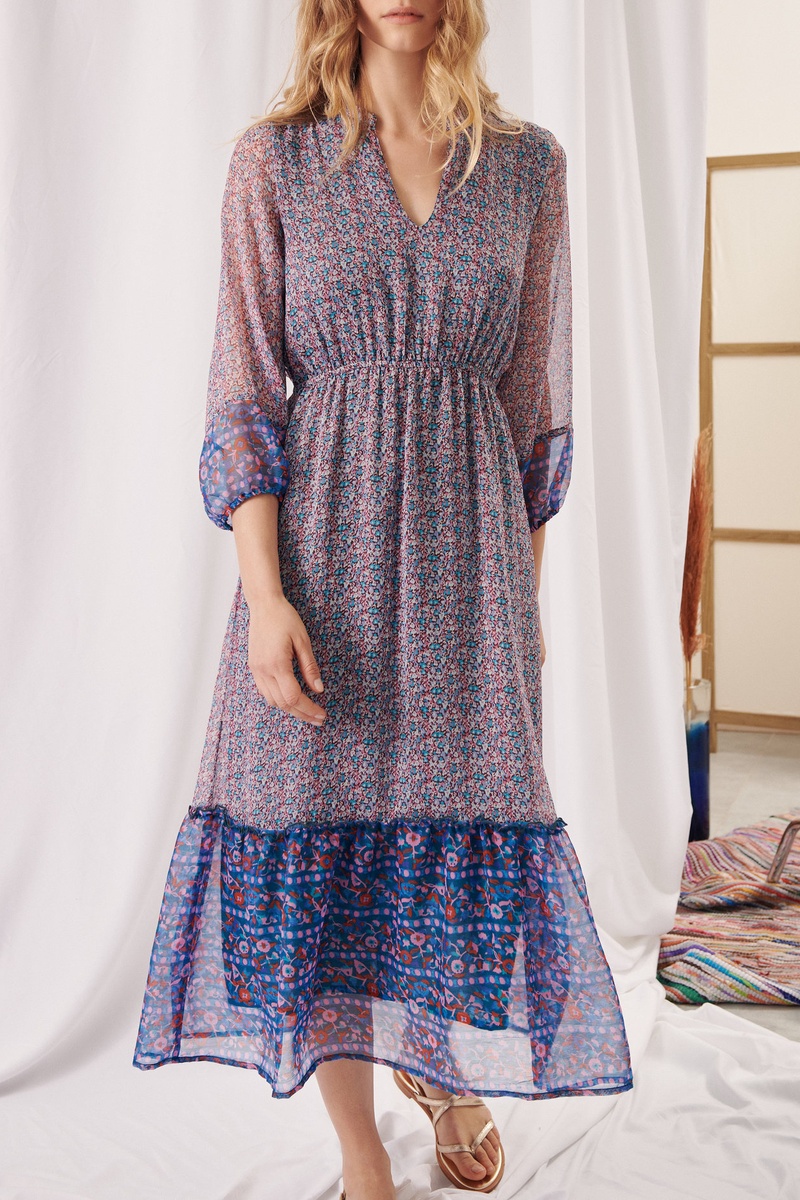 Robe longue - Bleu et lilas