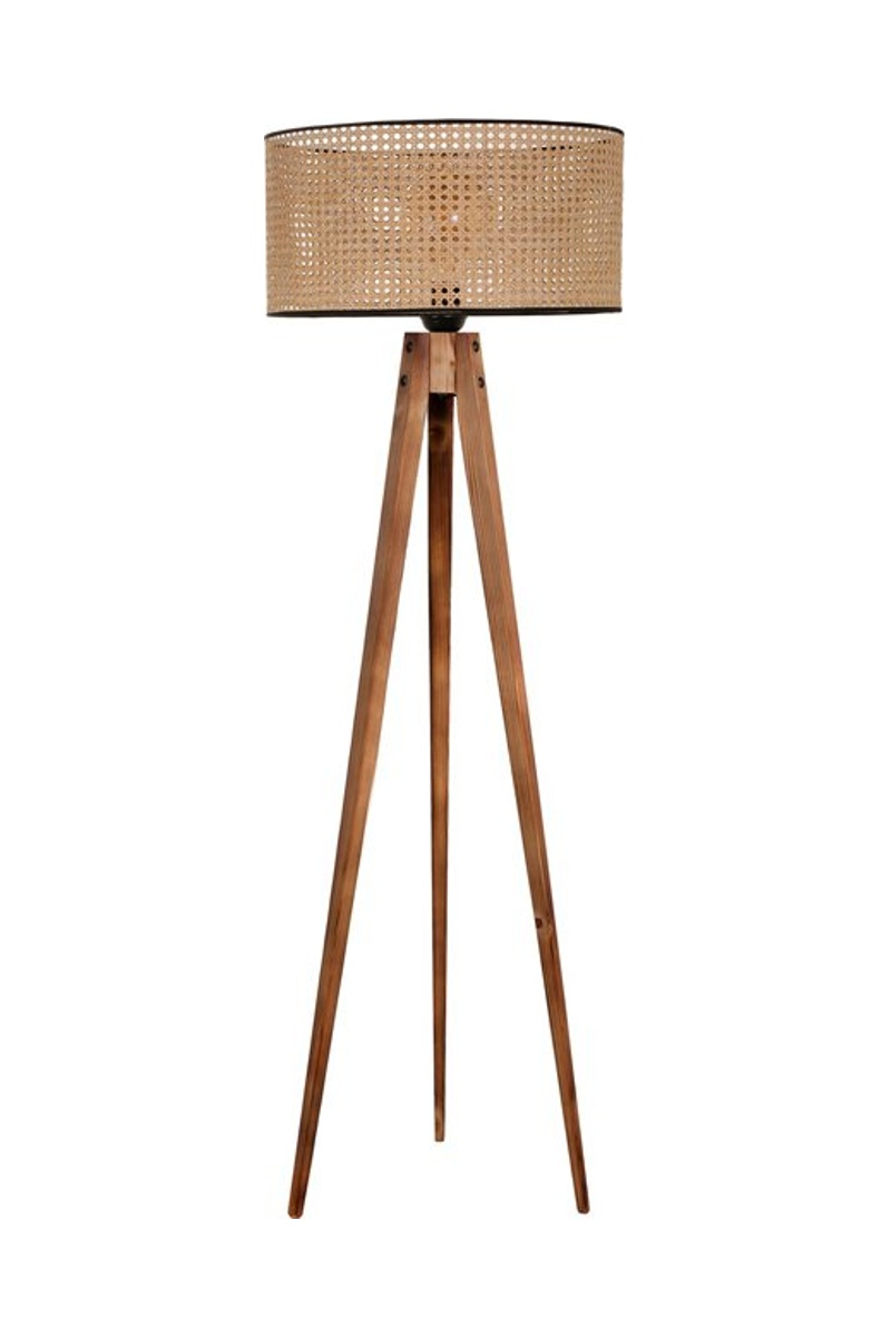 Lampadaire trépied en bois - Imitation bois et beige