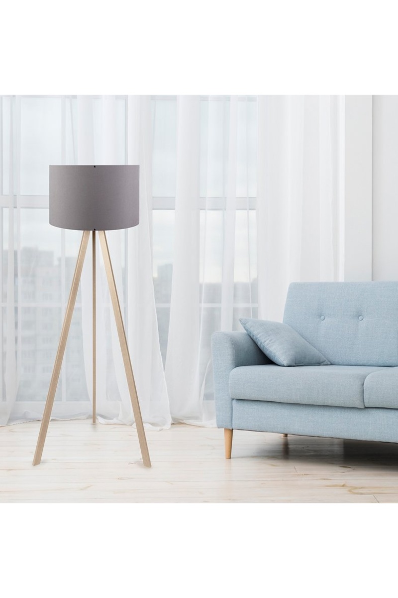 Lampadaire trépied Ayd - Gris et imitation chêne
