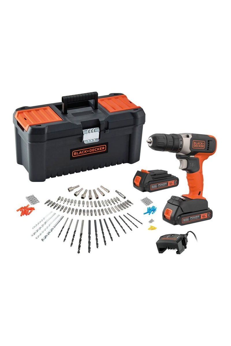 Livré avec 2 batteries 18 V 1,5 Ah, un chargeur et 120 accessoires dans une boîte à outils.