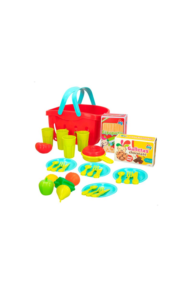 Le panier est équipé d'une variété de fruits, de légumes et d'accessoires de cuisine pour faire de vous le meilleur hôte.