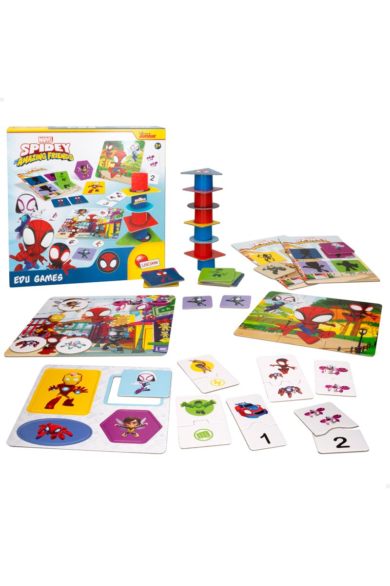 Découvrez une sélection rigoureuse d'activités ludiques et instructives qui aideront les enfants à développer des compétences de base, à stimuler leur logique, leur attention, leur mémoire et leur imagination : puzzle, tour avec formes, puzzle géométrique, chercher et trouver, premières couleurs, premiers chiffres, jeu d'association, mémo , jeu d'ombres et bingo. C'est le combo parfait pour apprendre et s'amuser avec Spidey !