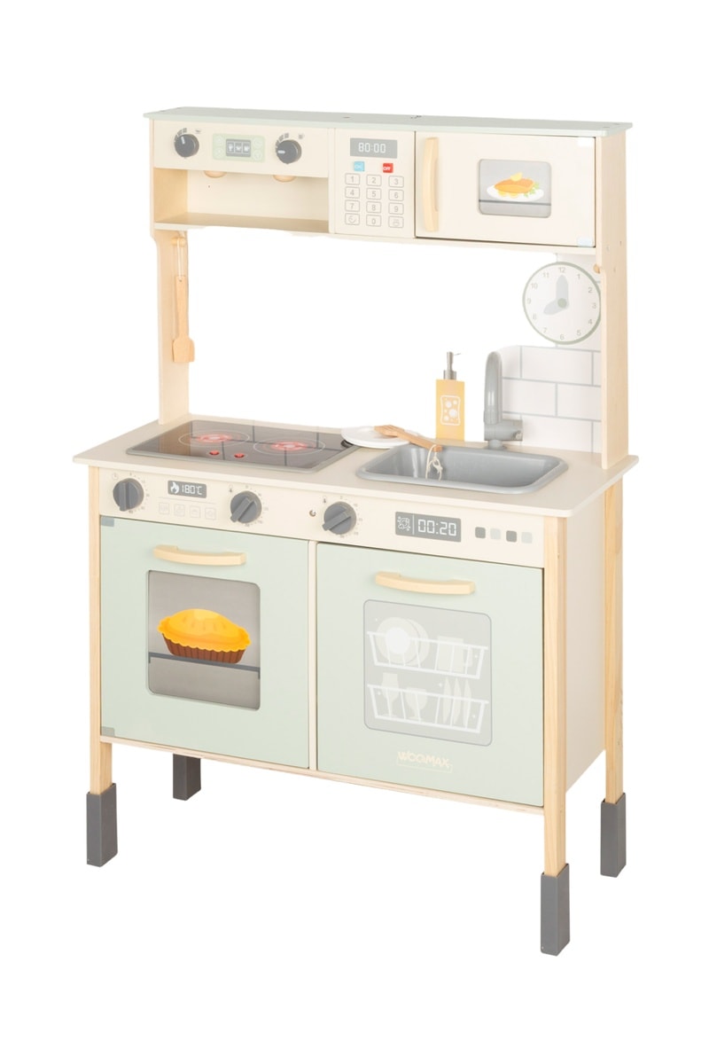 Ses couleurs douces, son horloge décorative et ses crochets pour ustensiles en font un jouet unique pour jouer et apprendre.