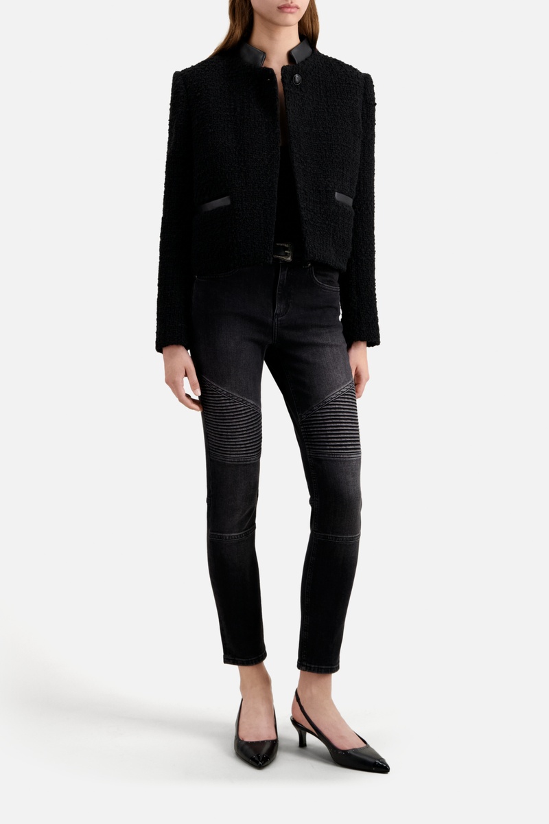 Empiècement en cuir d'agneau à l'encolure et sur les manches.