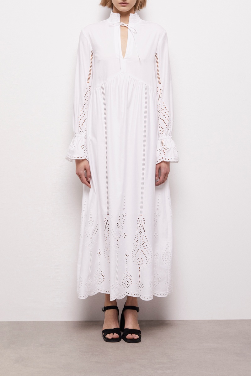 Robe longue en broderie anglaise.