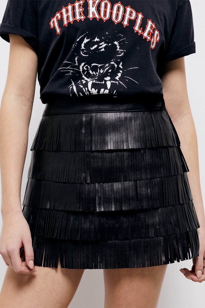 Minijupe en cuir d’agneau.