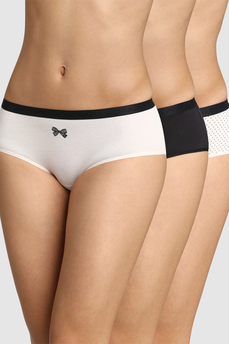 1 uni, 1 avec motif nœud et 1 à motifs pois.