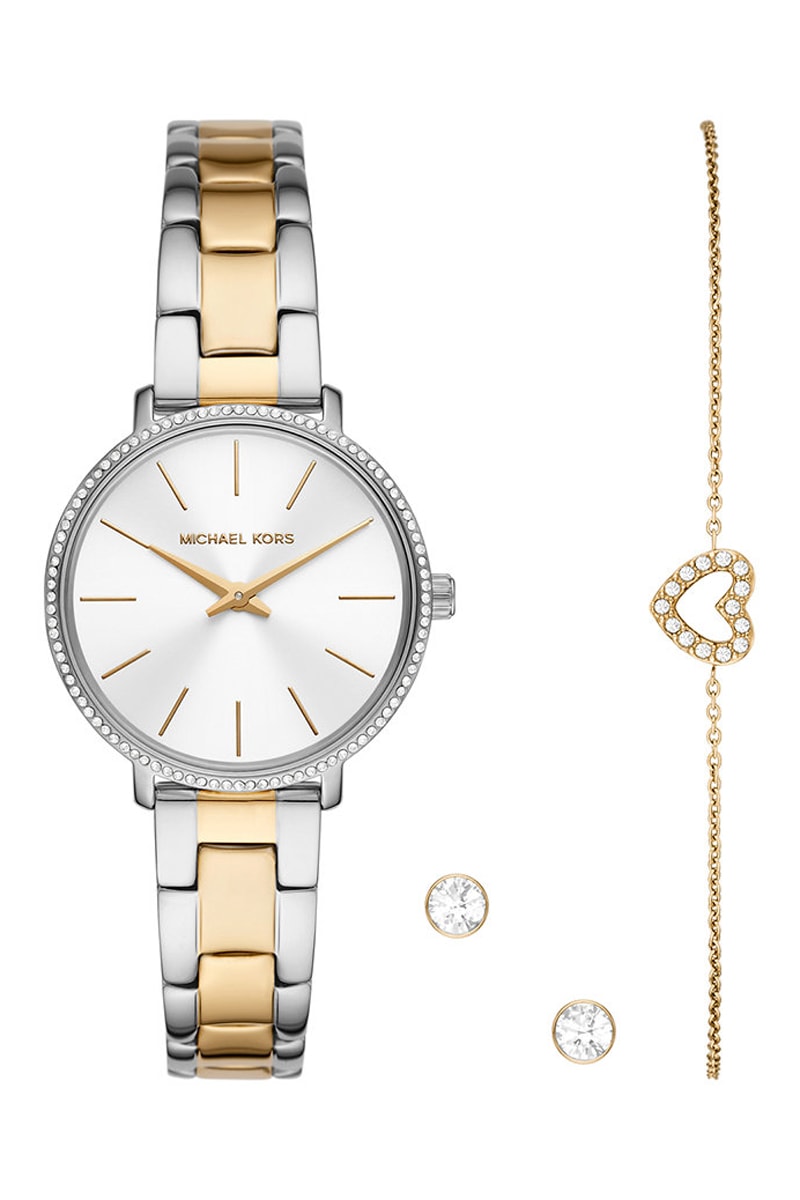 Coffret montre à quartz en acier, bracelet et puces - Doré et argenté