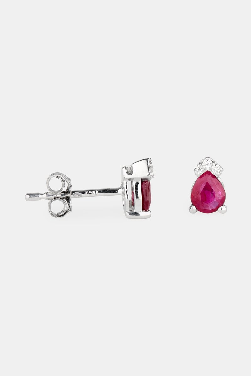 Puces en or blanc serties d'un rubis et de 3 diamants.