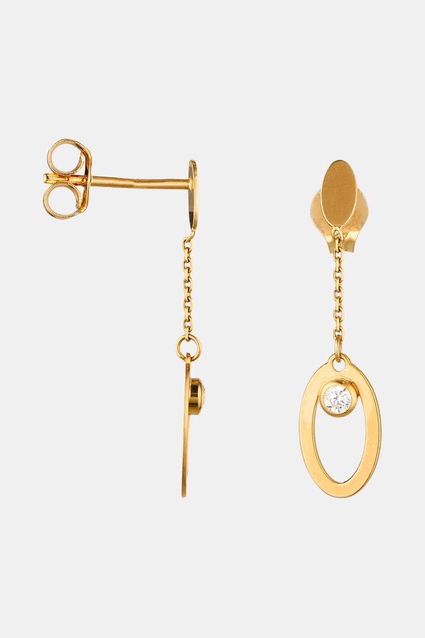 Boucles d'oreilles pendantes en or jaune serties d'un zirconium.