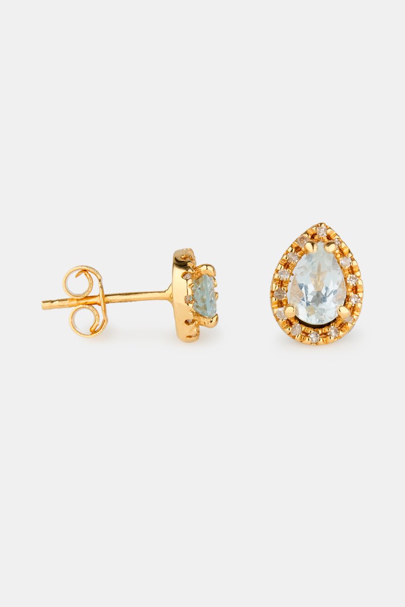 Puces - Or jaune 18 carats, aigue marine et diamant