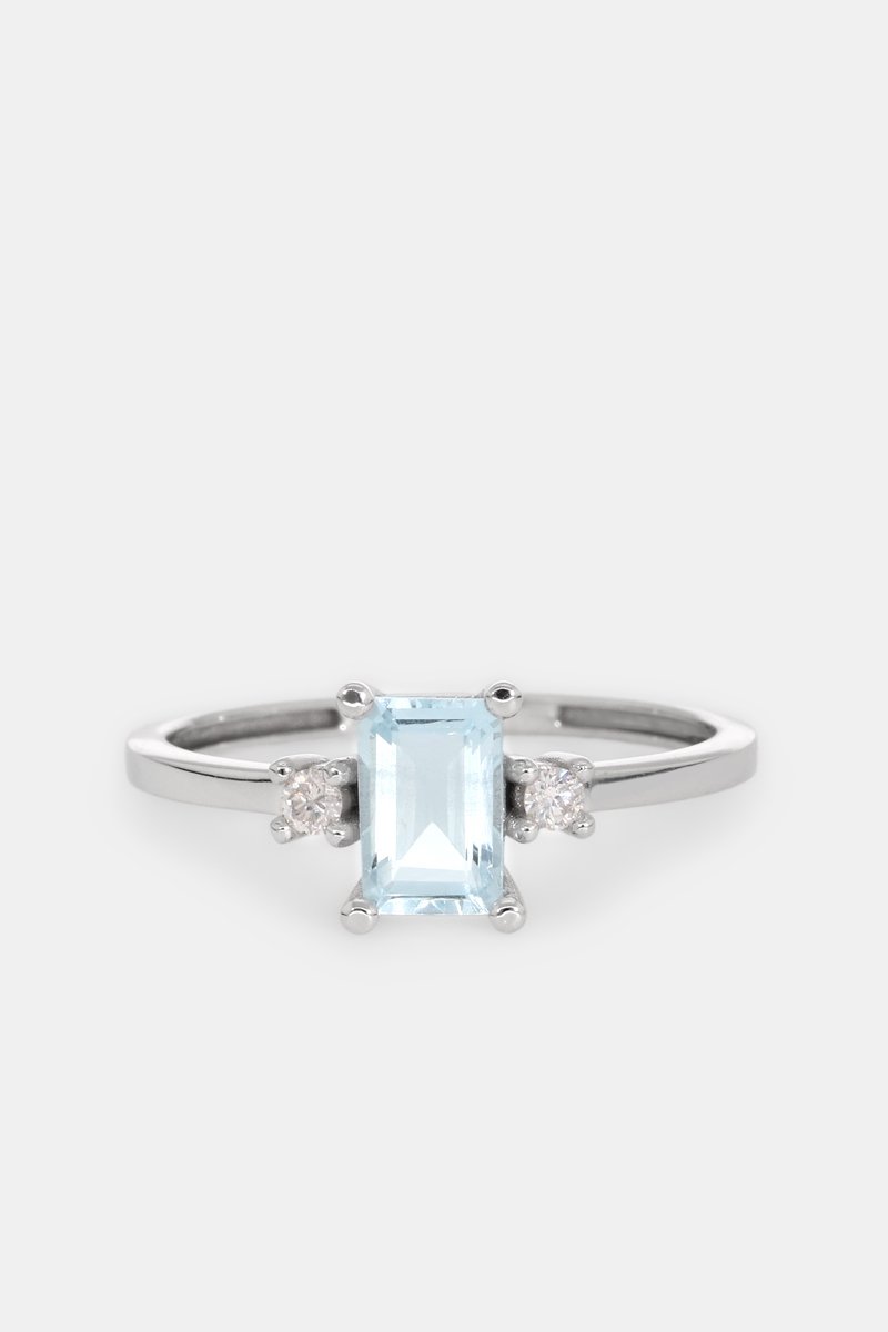 Bague en or blanc sertie d'une aigue marine et de 2 diamants.