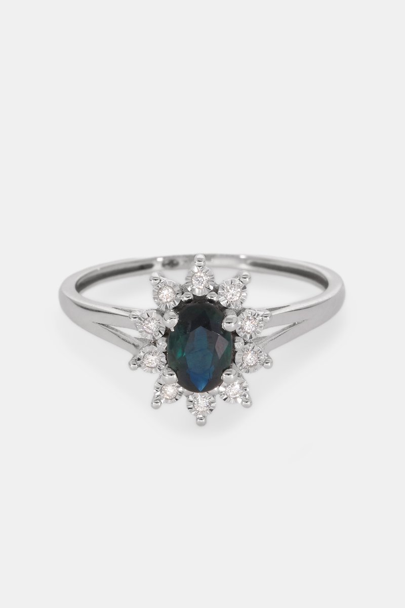 Bague en or blanc sertie d'un saphir et de 10 diamants.