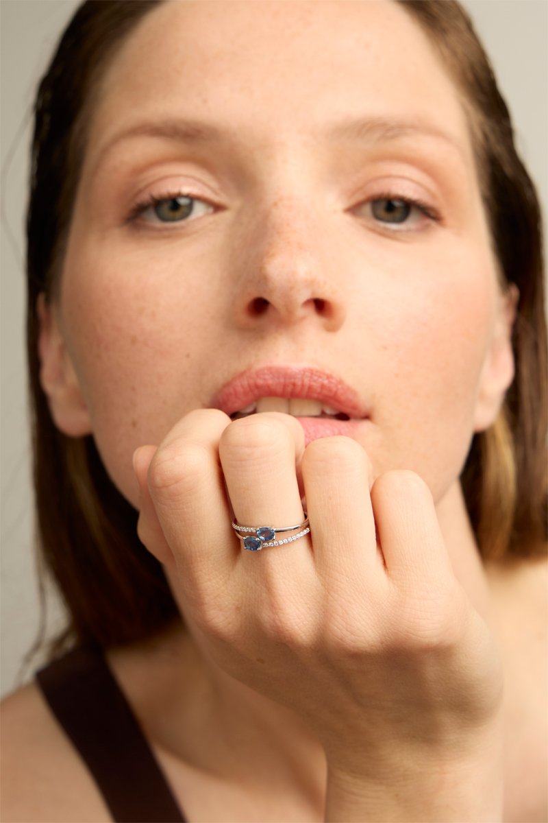 Bague - Or blanc 18 carats, saphirs et diamants