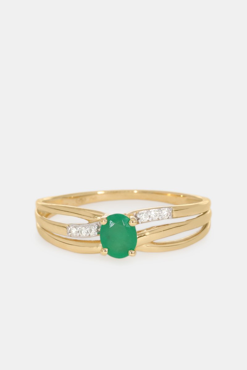 Bague en or jaune sertie d'une émeraude et de 6 diamants.