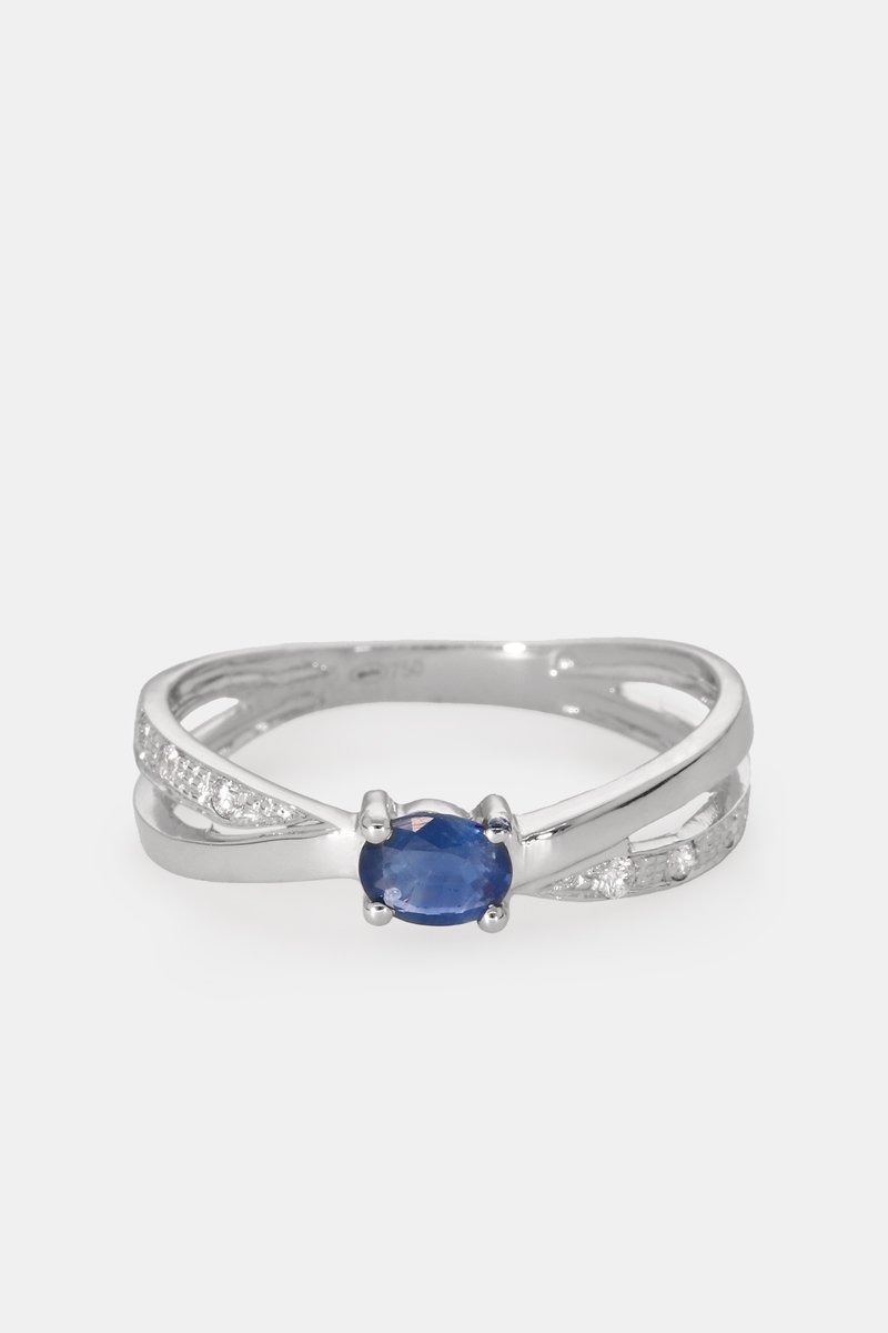 Matière : or blanc 750/1000, saphir et diamants 0,06 carat/6