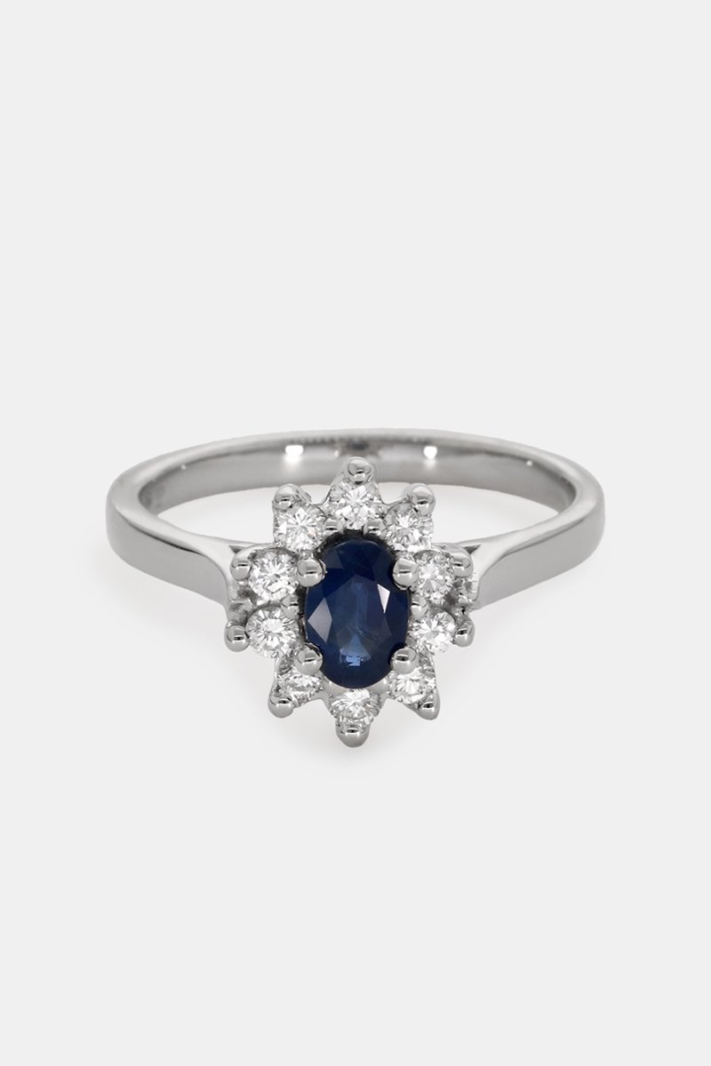 Bague en or blanc sertie d'un saphir et de 10 diamants.
