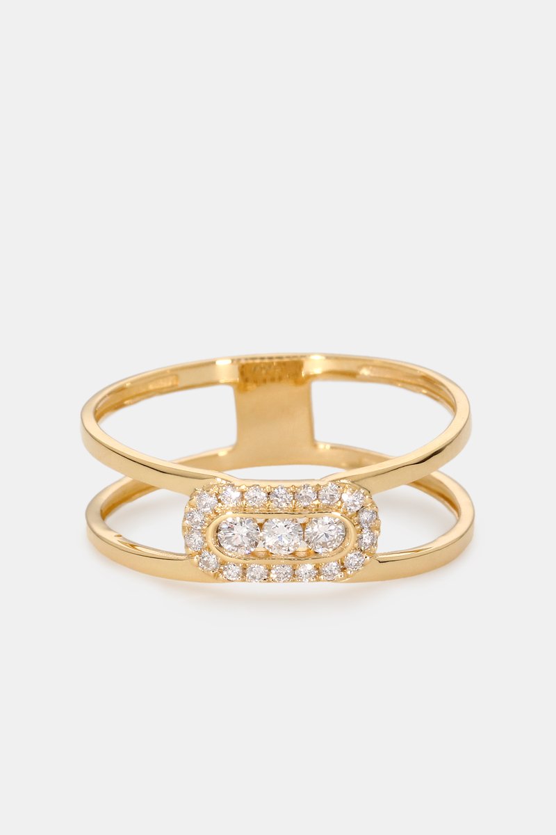 Bague en or jaune sertie de 21 diamants.