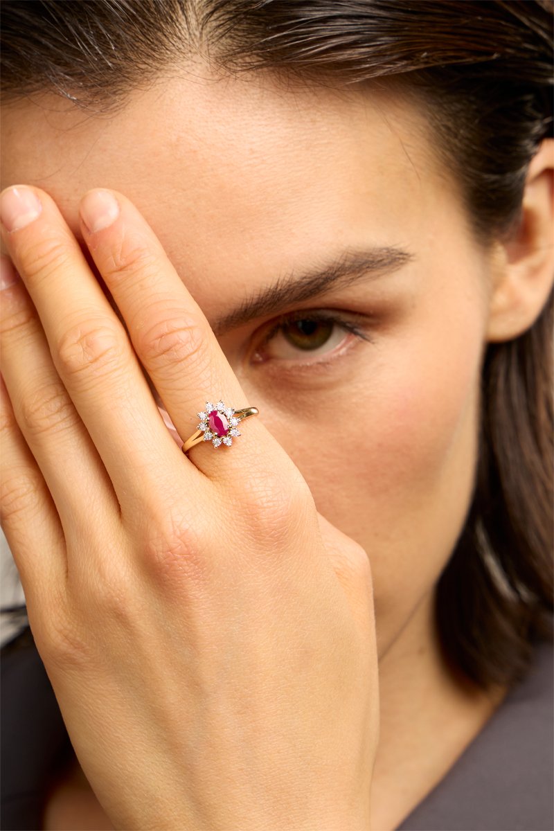 Bague en or jaune sertie d'un rubis et de 10 diamants.