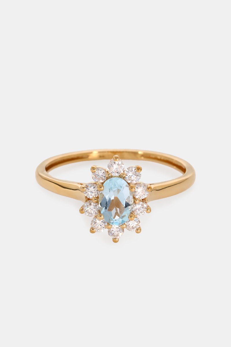 Bague en or jaune sertie d'une topaze et de 10 diamants.