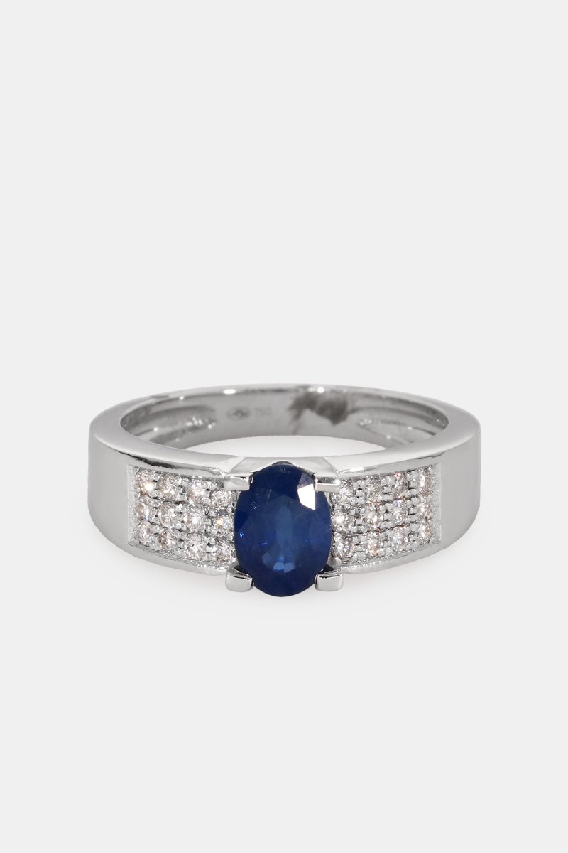Bague en or blanc sertie d'un saphir et de 24 diamants.
