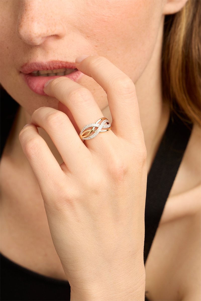 Bague en or jaune et or blanc sertie d'oxydes de zirconium.