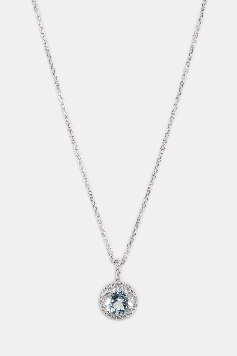 Collier - Or blanc 18 carats, aigue marine et diamants