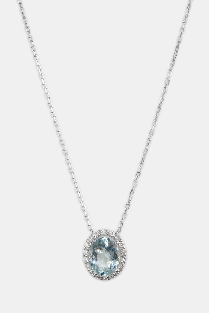 Collier - Or blanc 18 carats, aigue marine et diamants