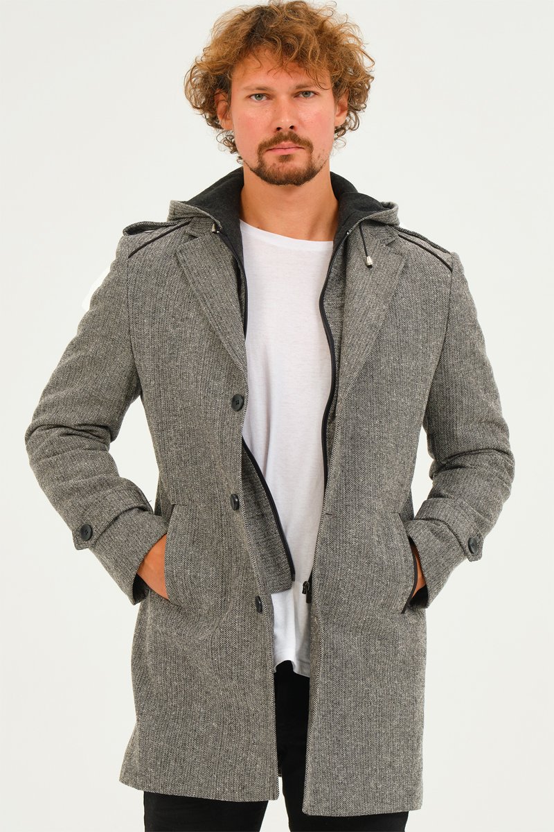 Manteau à capuche en laine - Gris