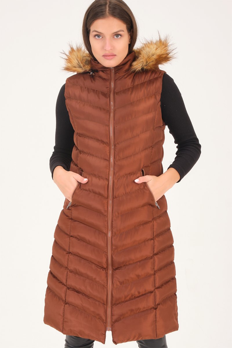 Doudoune longue à capuche - Marron