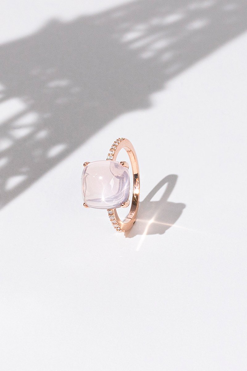 Bague Rose Dragée - Or jaune, quartz rose et diamants