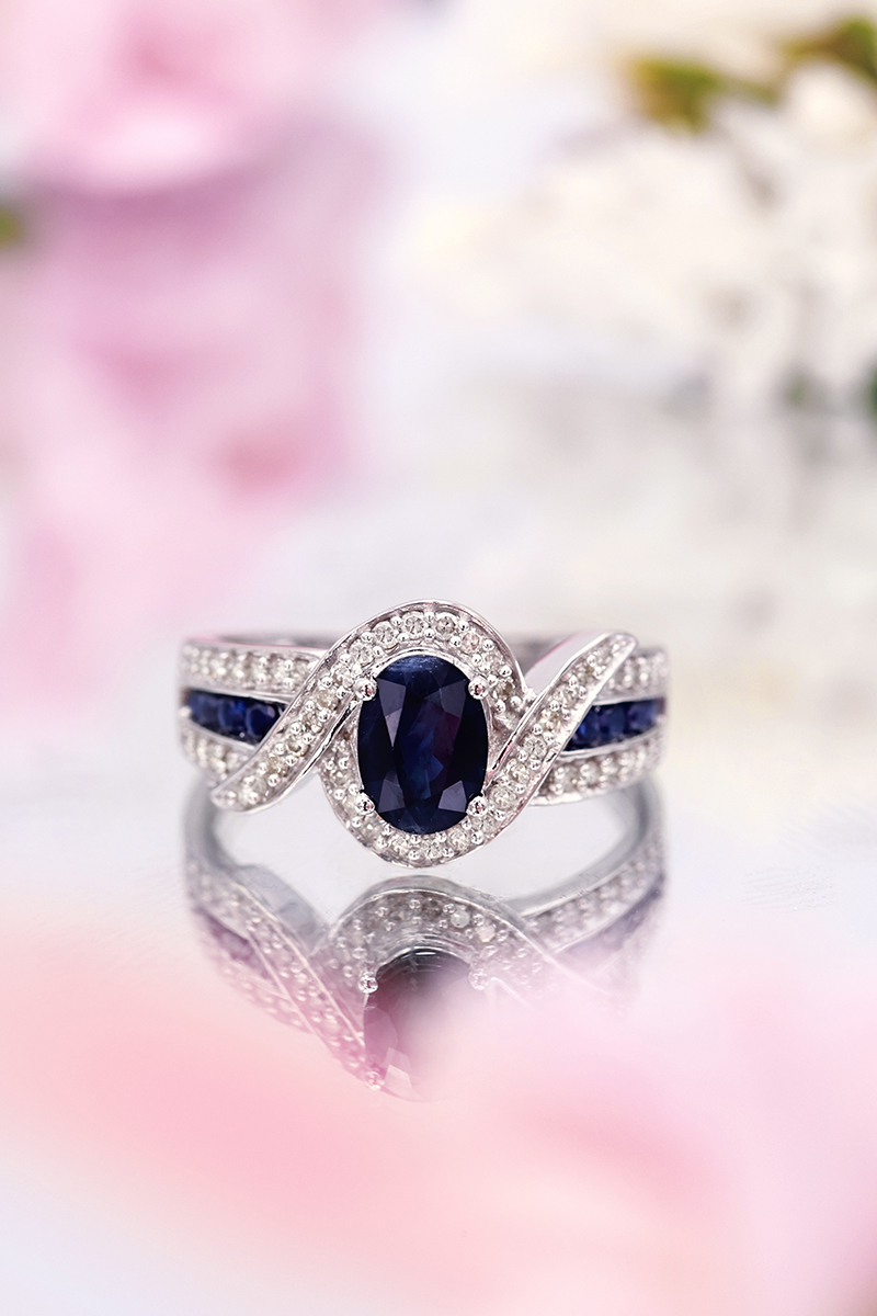 Bague en or blanc sertie de 50 diamants et de 9 saphirs.