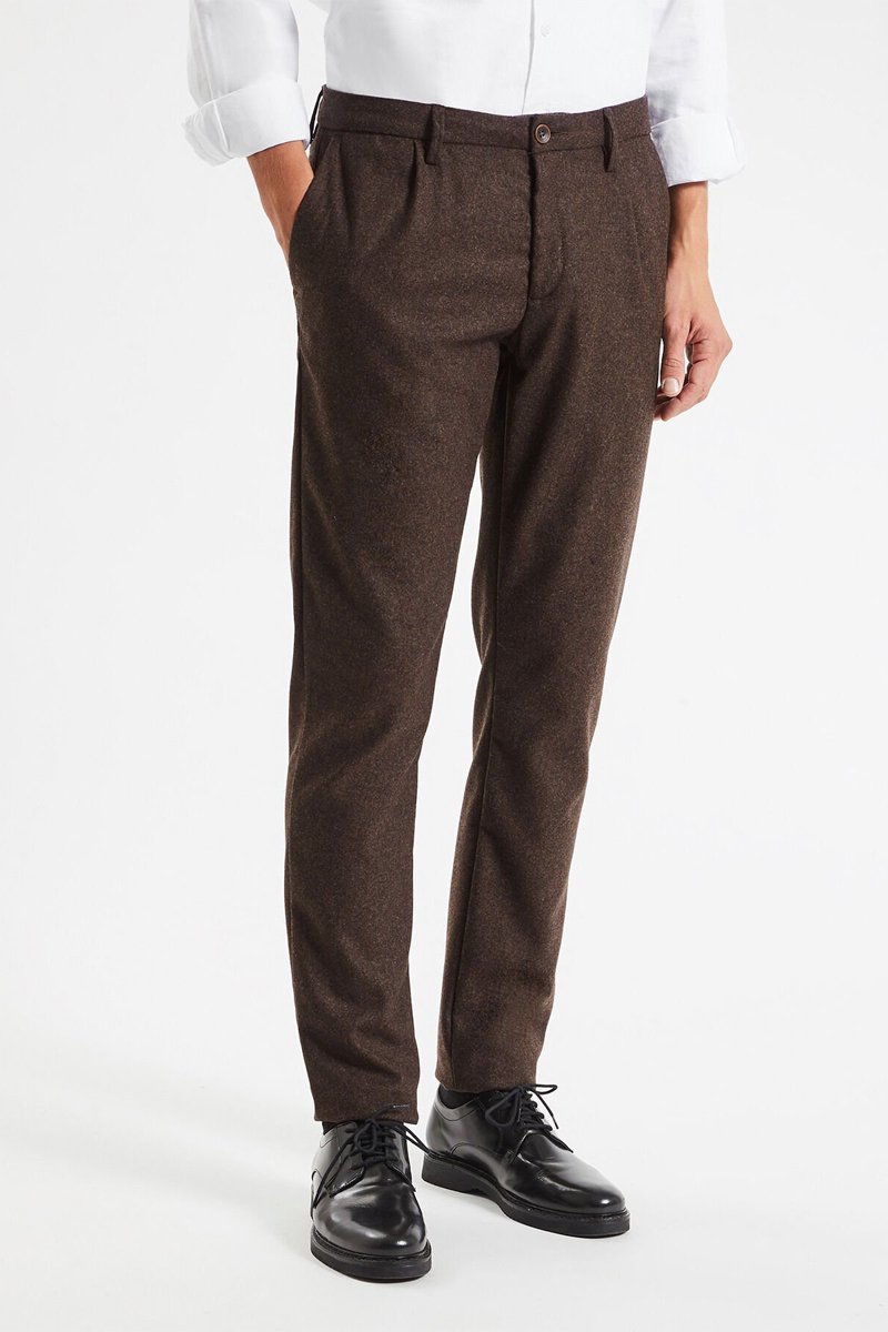 Pantalon slim en laine - Marron